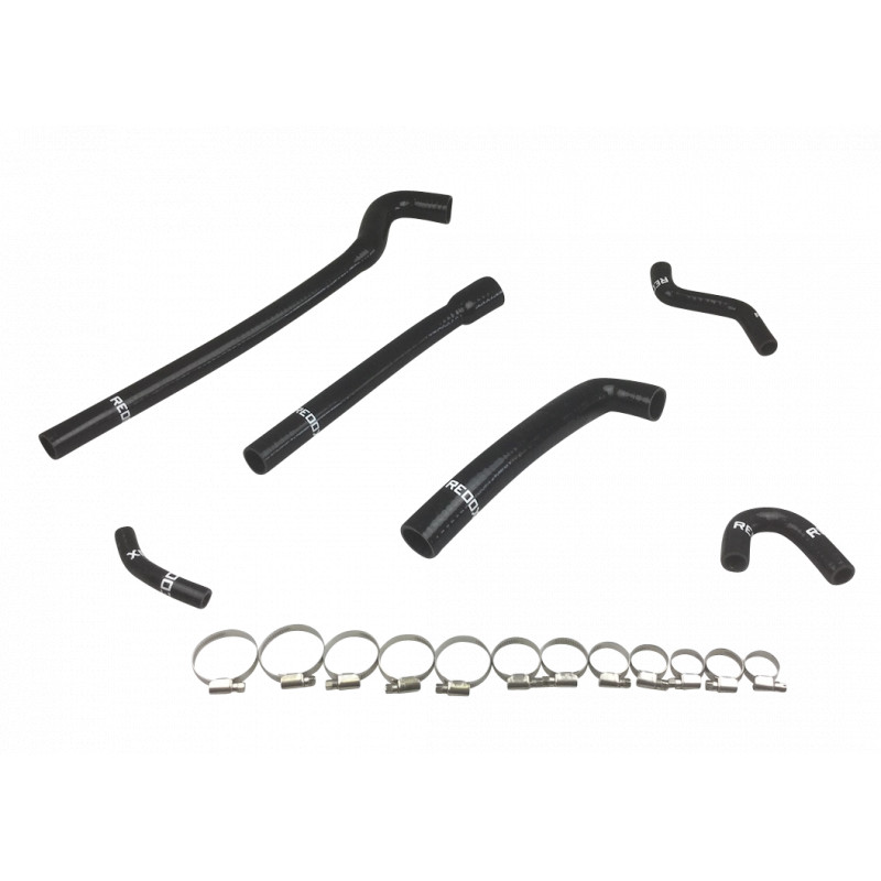 El kit incluye las 6 mangueras necesarias para asegurar las conexiones entre el radiador, la bomba de agua y el bloque motor, garantizando un reemplazo completo del sistema de refrigeración.