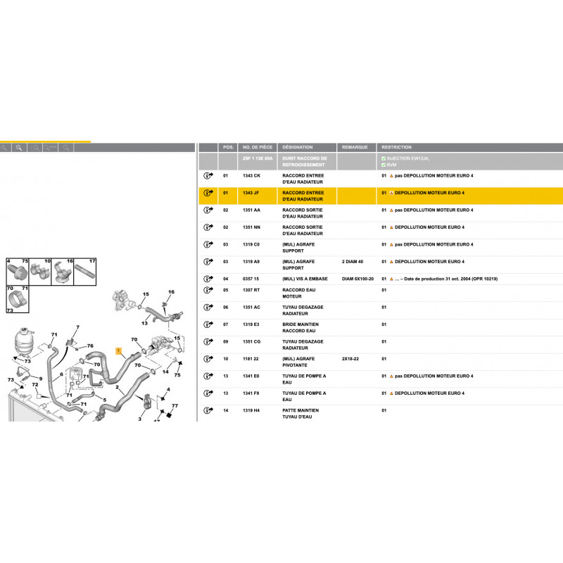 Este racor entrada agua radiador de silicona de calidad superior reemplaza la pieza original de caucho de su PEUGEOT 607 2.2 16V 163 CV gasolina. Diseñado para el circuito de refrigeración del motor EW12J4 conforme a la norma EURO 4, ofrece una resistencia y durabilidad significativamente superiores a los racores originales.