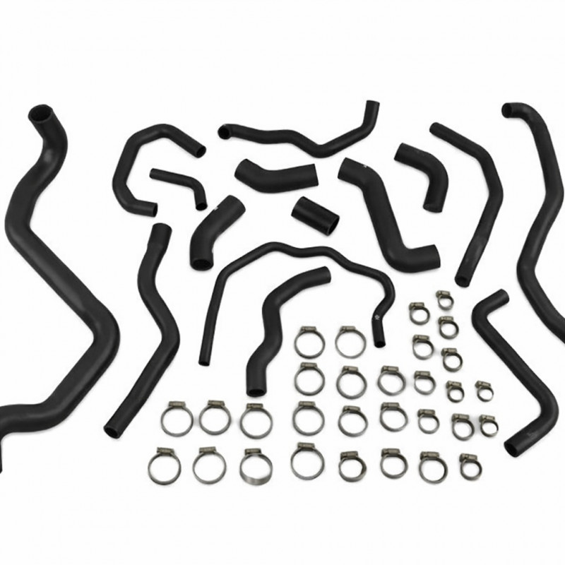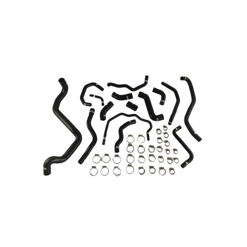 Material: Silicona VMQ de alta resistencia Construcción: 3 capas tejidas reforzadas Grosor pared: 4mm constante Temperatura: -50°C a +180°C continuo Presión: Resistencia superior a 3 bares Contenido: 15 mangueras de formas específicas Abrazaderas: Abrazaderas inox aviación incluidas Colores: Azul, Negro o Rojo a elegir Circuito: Refrigeración motor completa Garantía: De por vida sin limitación kilométrica